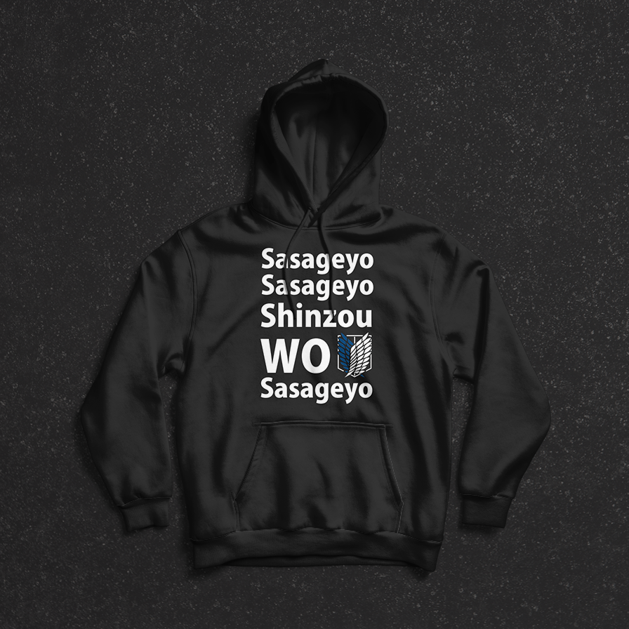 هودي اسود هو الخيار لعشاق Attack on Titan. مع طباعة شعار “ساساجيو” الشهير، سيمنحك هذا الهودي إطلالة قوية مستوحاة من المانغا. تصميمه العصري يوفر لك راحة لا مثيل لها ويحافظ على أناقتك في كل مكان.